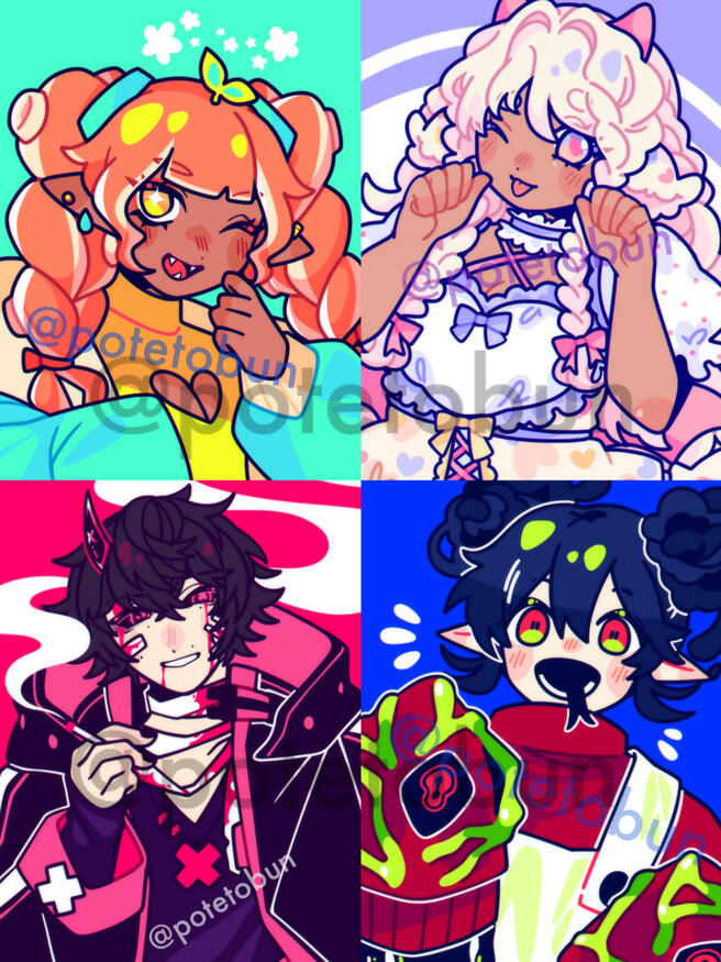 Listed on Twitter (@potetobun), Instagram (@buntown.shop), and toyhou.se (tsukichubun)